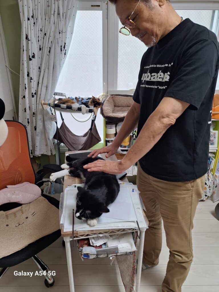 はじめて健康なにゃん太に施術したが大人しくオムニを受けていた